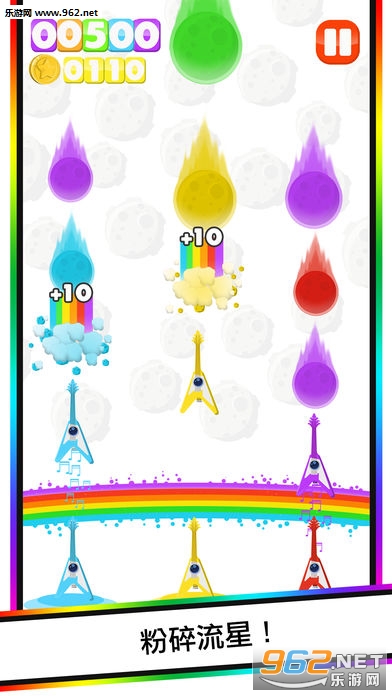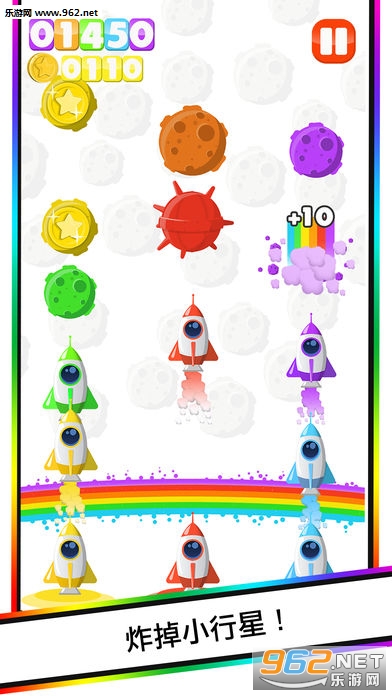 彩虹火箭是一款非常考验操作能力的弹射趣味手游,它的英文名是rainbow rocket,游戏中玩家需要守护屏幕下的彩虹,用相同颜色的火箭去化解危机,其中还包涵了融合元素,非常的具有挑战性哦!