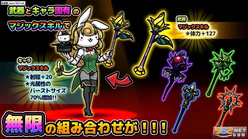 游戏设定有魔性,游戏中的各色猫咪角色也是有魔性的很。穿西装的猫咪,披铠甲的猫咪,更有筋肉男猫,再加上如同中毒一般的配色,一切都是那么的有毛病。接下来就是重头戏了,更加值得注意的是,该作制作公司IGNITION M是2016年自PONOS独立出的新公司,而本作负责人正是PONOS旗下全世界超过3000万下载的《猫咪大战争(にゃんこ大戦争)》生父升田贵文。而从游戏画面中,也可感受到两者的相似之处——《猫咪大战争》粉丝不妨下载体会。