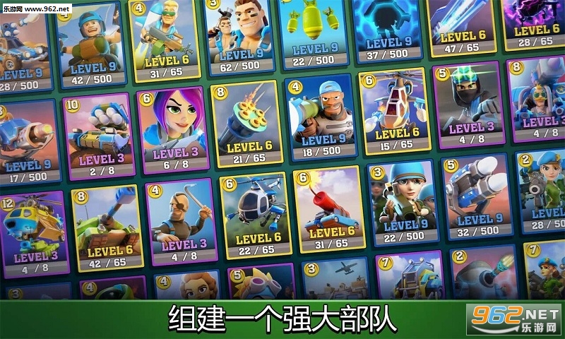 3、构建真棒单位的一个小分队,带领上阵!收集40个不同的士兵,车辆,武器和基地防御!