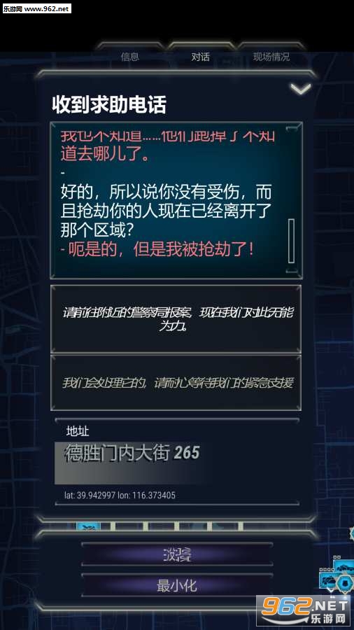 对话期间,您可以通过询问适当的问题,如“嫌犯有多少人”“事件在何地发生”等,进一步了解事件的情况,而这一切最终的目标是——在不占用过多资源的情况下,保证事件能够妥善解决。另外,玩家也可以给求助者一些帮助,比如指导其实施心肺复苏,或是告诉他们如何控制火势——这些都有助于问题的处理。