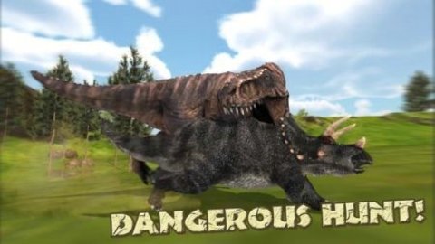 2、在这个恐龙狩猎模拟器中,你必须扮演一只狩猎暴龙,准备好面对各种猎物和顶级掠食者;