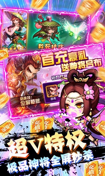 4.海量充值券上线就送,丰富钻石资源领不停,还有神将张飞、关羽助力开局。