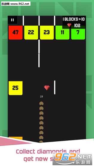 3、在游戏中你需要操控小蛇击破砖块不断成长从而获取更多的小球。