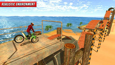 一款超级刺激的摩托车竞速闯关游戏,在各种十分复杂的场地中,进行激烈的摩托车特技表演,并率先抵达终点吧。小心的躲避各种出现的障碍物,同时要保证不偏离赛道,这是很难办到的事情。非常逼真的画面感,极佳的3D视角呈现,熟悉每一个动作要领,才能让你的比赛变得更为流畅。