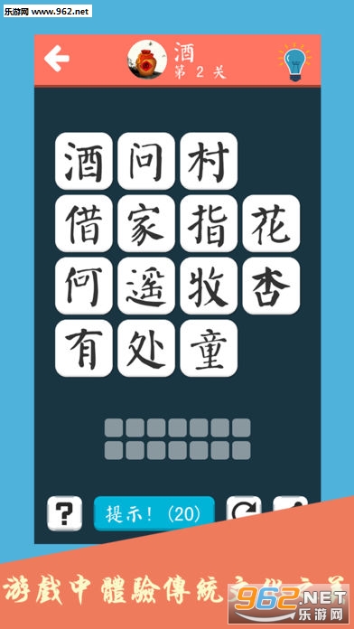 《诗词大会飞花令游戏安卓版》这是一款以传统诗词文化为题材的休闲益智连线手游。游戏画面简约清新,玩法类似与中央电视台《中国诗词大会》的诗词飞花令,将诗词与连线玩法相结合,考验玩家的诗词功底。游戏上手简单,老少咸宜,感兴趣的玩家可以下载游戏体验!