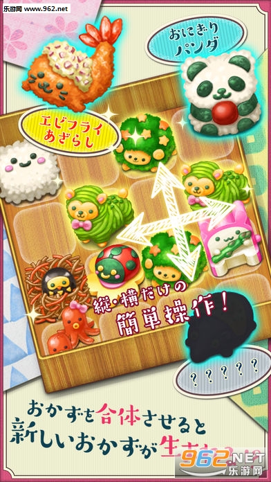 和2048一样,只要滑动屏幕,让相同的便当部件合在一起,就可以得到新的便当部件!