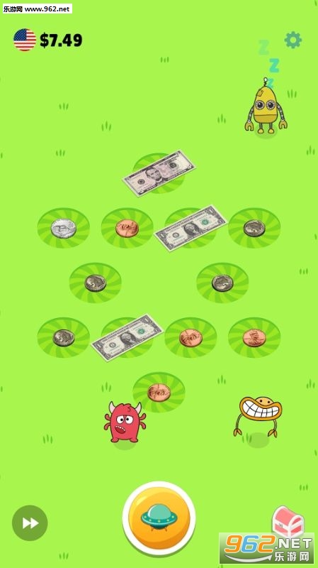 有一个外星人会吐出钱币,但是他只能吐出一角钱的硬币,这些对于外星人想要购买的物品来说是不够的,你需要帮助外星人,使用硬币把它们合成其他的数字,你可以帮助外星人来购买物品,也可以扩大你的硬币平台。