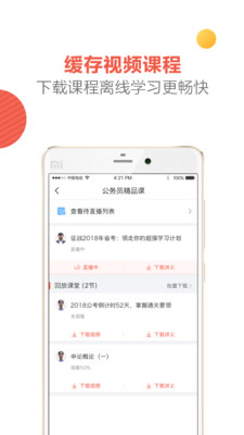 4、公考名师在线视频直播,师生互动,支持离线下载,真正实现公考随身学,口袋公考随身听;