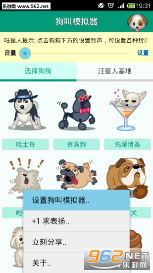 狗叫模拟器,它可以模拟狗狗的各种状态下常用的声音叫声。