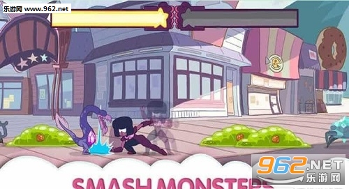 1、与Steven一起跳跃滑翔,打败怪物;
