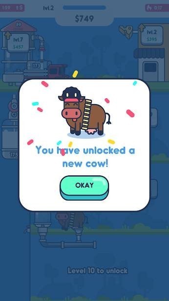 2.游戏中的画面和场景设计都非常可爱,玩家需要种草,购买奶牛和装备,建造和重建牛棚;