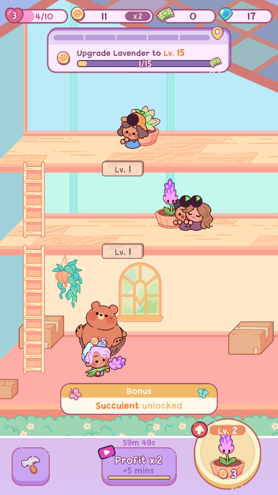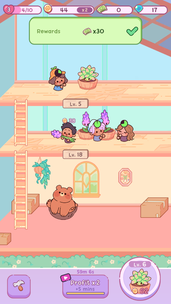 -放松和闲置,看着你的化身和园丁照顾可爱的植物并将其出售给熊妈妈!