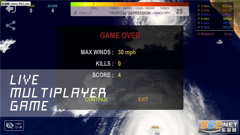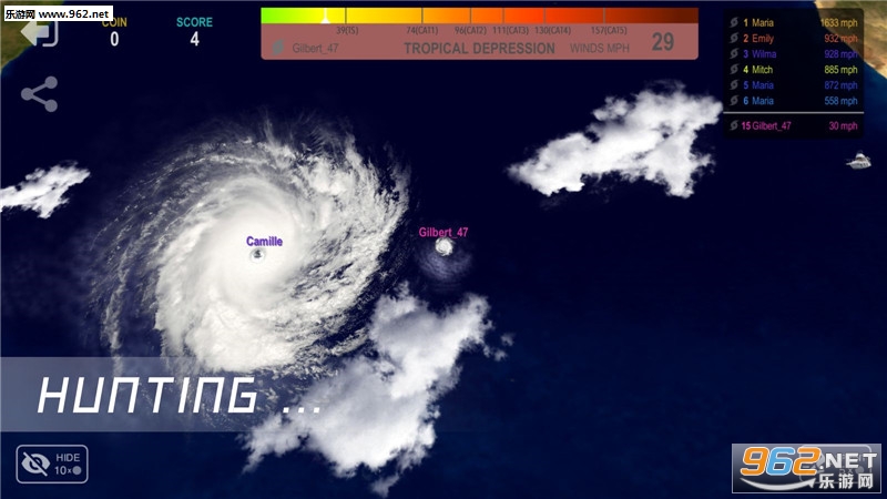 《飓风.io》是一款非常有意思的即时战斗游戏,游戏制作精美,画面高清细腻,游戏中非常真实的卫星云图图片,让玩家非常具有代入感,感觉自己就是飓风,游戏初始,玩家只是一朵小小的云,你需要通过不断的收集能量,吃掉规模比你小的飓风,你才能成长为打飓风,进入游戏,成为强大的飓风吧。