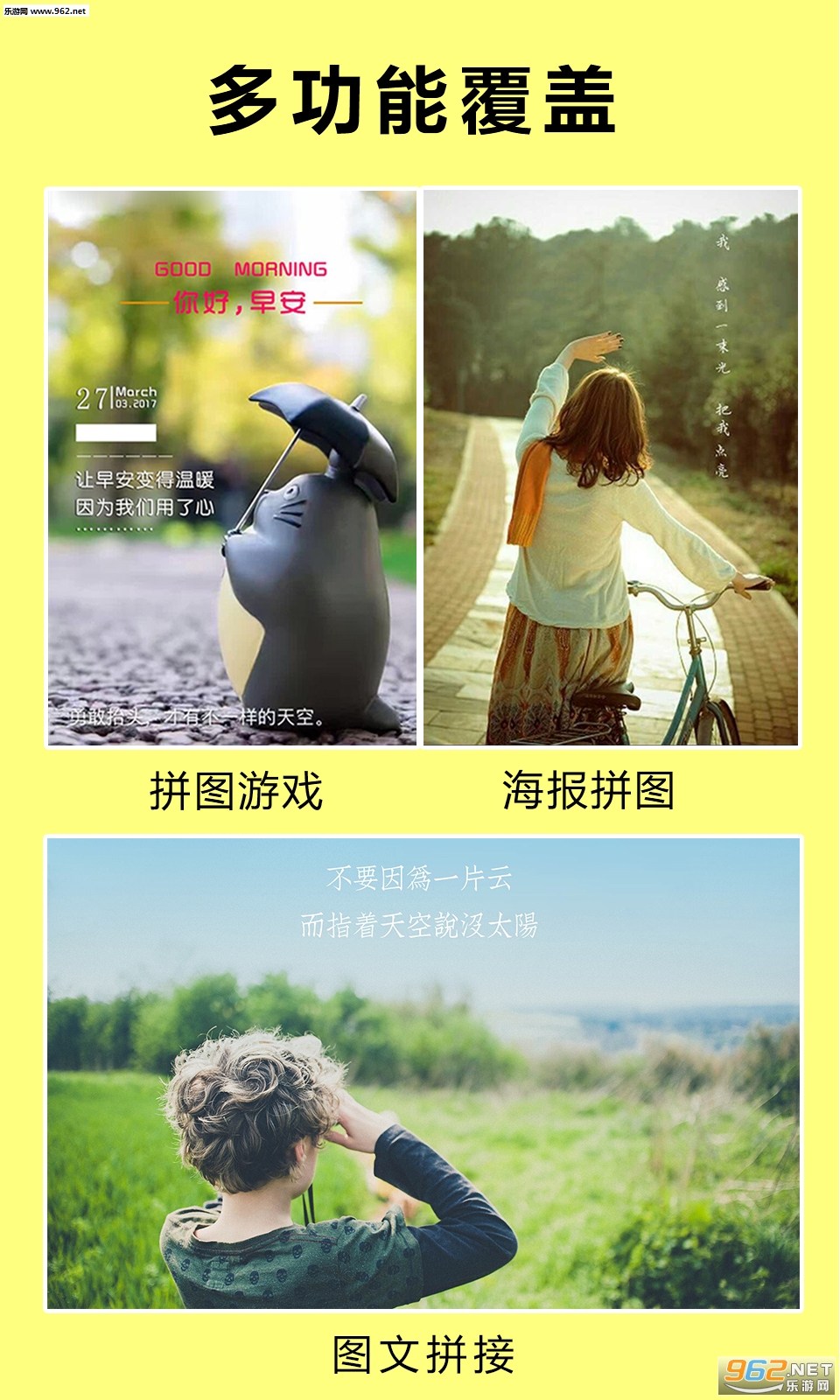 拼图相机有游戏、花草、星座、公主头像等不同风格的美图贴纸,不仅操作简单生动有趣还完美的解决了用户纠结拼图的苦恼。