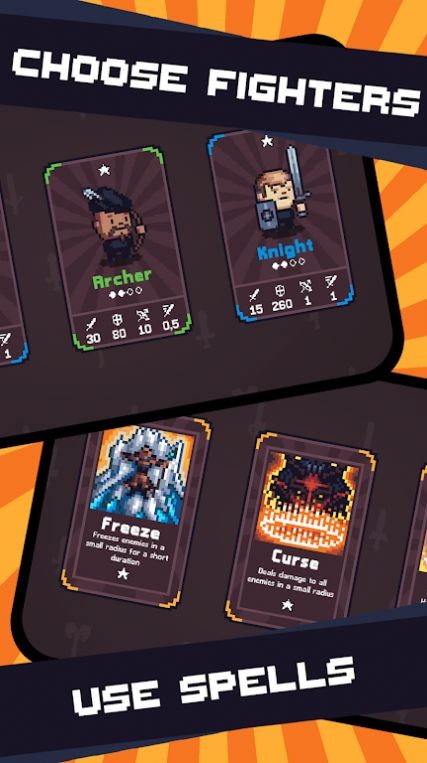 2、策略选择与培养不同职业像素英雄,构建多元队伍。