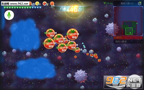 如果大家的球球足够大之后,可以勇敢一些,直接吞噬各种尖刺,将周围的尖刺全部吃掉,可以迅速增大自己的体重哦。
