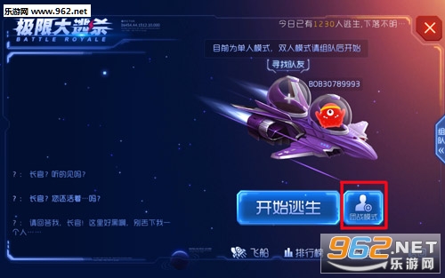 进入游戏后,点击大逃杀模式,我们可以看到以前的“飞船”按钮变成了现在的“团战模式”按钮了。