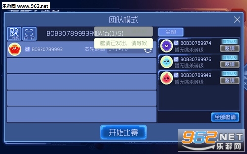 点击进入后团战模式后,可以邀请自己的好友,当然如果好友没有那么多,也可以直接点击开始,系统会自动随机匹配其他玩家跟我们进行组队。