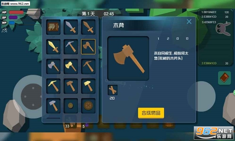 4、采集资源合成神奇的工具,帮助你建设家园;