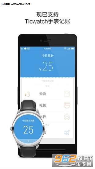 3、支持 Ticwatch 手表记账;