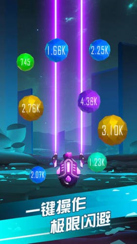 1、躲避、射击、求生,你在这个令人惊叹的霓虹灯战场中前进时,要小心躲避敌人的攻击;