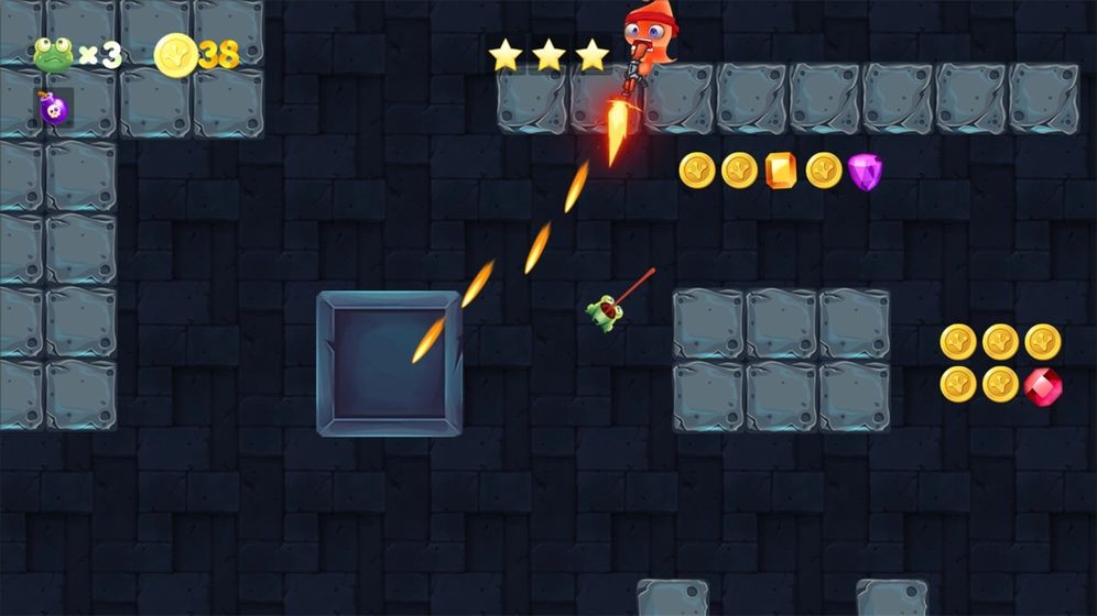 摇摆地牢是一个精彩的休闲跳跃游戏. 玩家将在这里扮演青蛙,依靠主角灵活的舌头探索地牢. 游戏操作非常简单,只需控制左右按钮,瞄准定时按钮即可控制青蛙的跳跃,并获得丰富的地牢宝藏.喜欢的玩家快来下载吧.