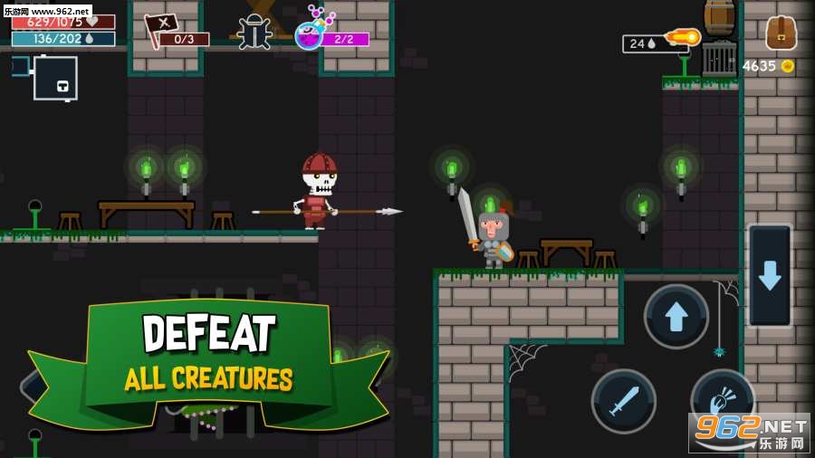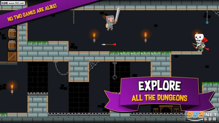 在地牢里纵横驰骋,打败你的敌人,避开防守陷阱和升级你的英雄。当你征服地牢,你会得到更多的水平和升级你的骑士,需要对抗黑暗和发掘它的秘密。