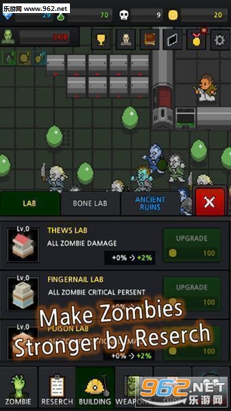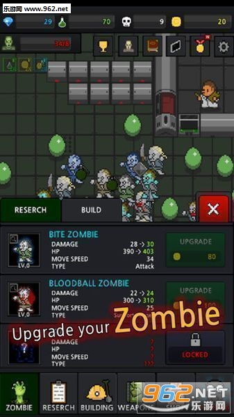 《培育僵尸僵尸工厂安卓中文版》是一款像素风格模拟养成休闲类游戏。游戏以僵尸为题材,只不过这一次你看不需要用武器来消灭僵尸哦,而是需要将相同的僵尸进行合成,从而培育出更高级的僵尸,来征服世界,玩法简单,内容丰富,快来下载吧!