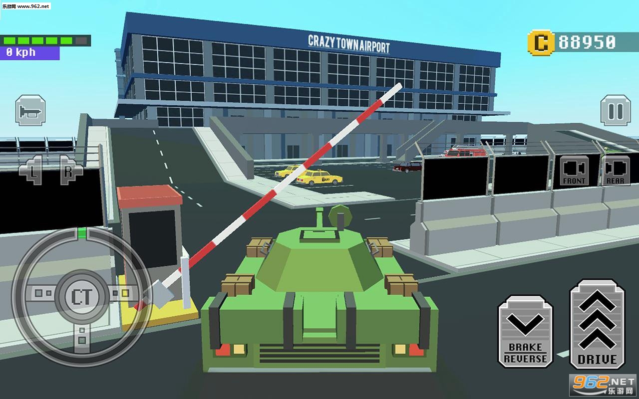 《疯狂的城镇安卓版》(Crazy Town)是一款像素方块风格的驾驶模拟游戏,游戏中玩家可以选择逃犯、警察等不同的人物进行体验,可以驾驶汽车、坦克等交通工具,采用虚拟按键操作,玩家掌握好方向盘即可,踩油门横冲直撞。