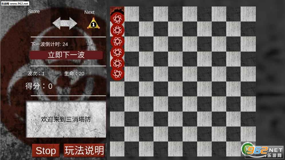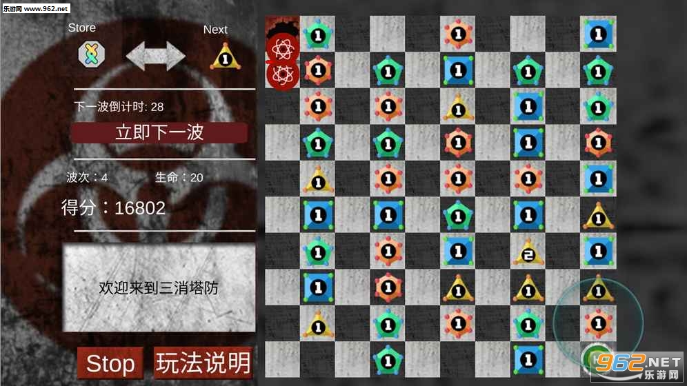 把系统随机生成的Next位置的塔放入10X10的格子里
