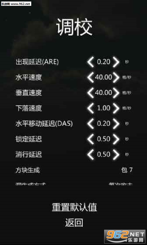 详细的游戏调校(移动速度,出现延迟,瞬间下落20G,游戏统计等)