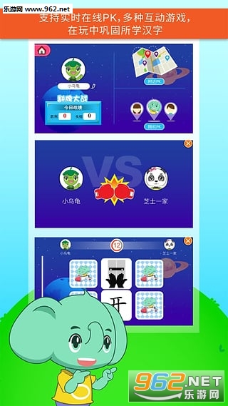 3、1581部汉字动画,2大在线PK游戏,快速闪卡练习,以及多个趣味互动;