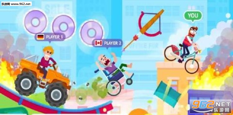 游戏为玩家们提供了非常丰富的角色和车辆选择,有比较简单的轮椅、自行车,也有高级一点的摩托车、轿车,甚至还有跑车、货车、大巴车等,玩家们可以通过挑战来获得这些车辆。系统为玩家们提供丰富的车辆,这也是吸引玩家们不断挑战的动力之一,特别是对于有收集欲望的玩家们来说,收集车辆就成了最大的目标。