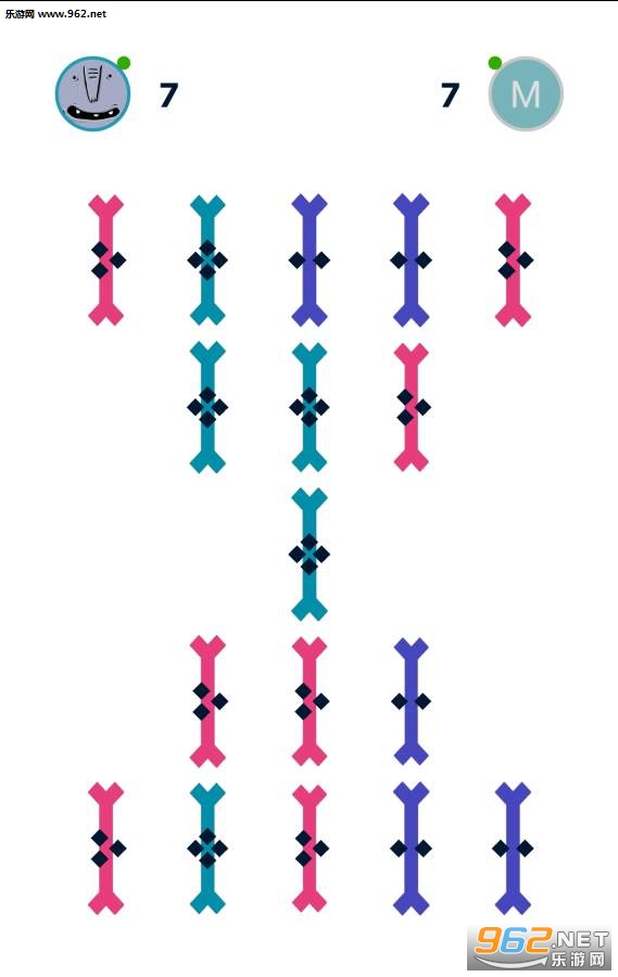 游戏支持双人同屏对战,玩家各操作一边骨头,在不断战略对抗中,将对方消灭即可。如果同时被摧毁,将认为是平局。