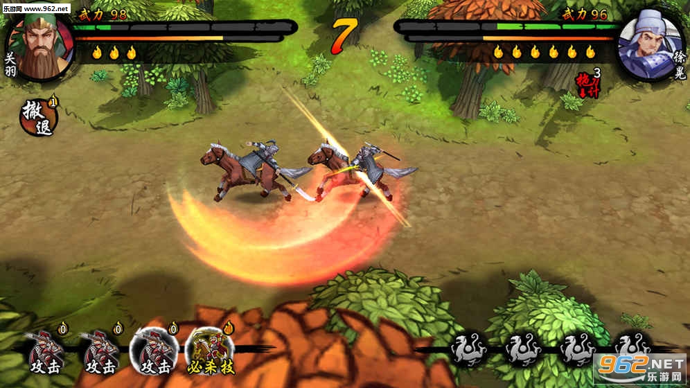 单挑是游戏中最紧张刺激的环节,有多种途径可以触发单挑。双方武将在限定时间内安排好将要发动的单挑技,不同色系的单挑技会互相克制。单挑过程中可以直接斩杀敌方武将!