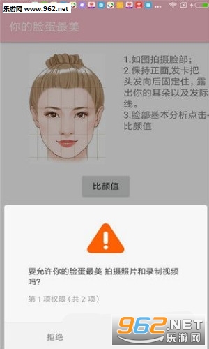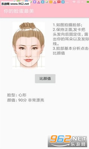 拍摄脸部时保持正面,发卡把头发向后固定住,露出你的耳朵及发际线,脸部基本分析点击“比颜值”就能够得出结论。