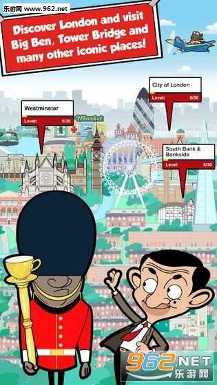 《和憨豆先生一起玩伦敦安卓版》(Play London with Mr Bean)是一款采用Q版风格的趣味休闲游戏,游戏的背景设置在伦敦,主角是我们敬爱的憨豆先生,这次他将再次给我带来各种无声的欢乐,有着众多的小游戏可以玩耍。