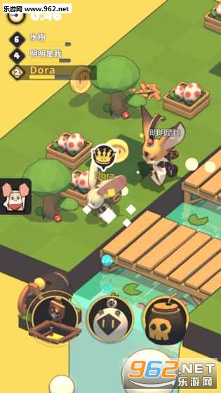 io游戏,游戏人物都是可爱的动物,玩法主要是抢夺王冠,王冠者可以使用道具,道具卡片有很多类型,人物可升级也可解锁更多,地图不是很大,不清楚后面有没有大地图,可能相比同类游戏游戏玩法上没那么多样,操作也不是非常顺手,但是就这画风还是很吸引人的,可以试试。