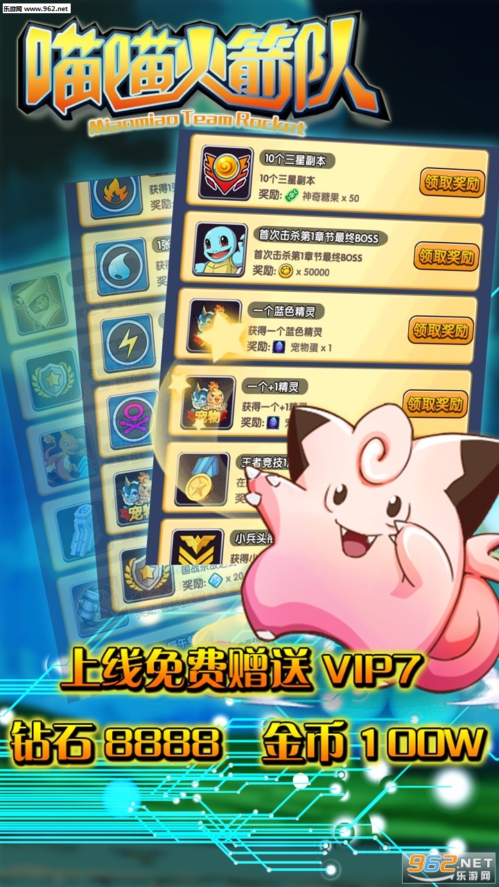 玩家们想要更多的礼包可以加962官网游戏群进群备注喵喵火箭队礼包即可!