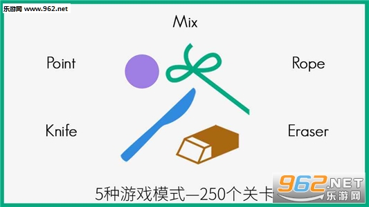 5种游戏模式:点、清除、绳子、刀子和混合模式。