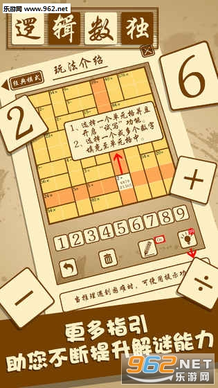 游戏分为两种模式:经典模式(数独)和进阶模式(肯肯KenKen)。
