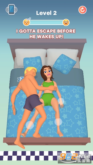 《床逃生游戏(Bed Escape)》游戏中我们的游戏过程全程在床上进行,在控制人物移动的同时千万不要吵到其他人,这是非常的考验玩家们的操作和反应的一件事,大家需要小心的进行。