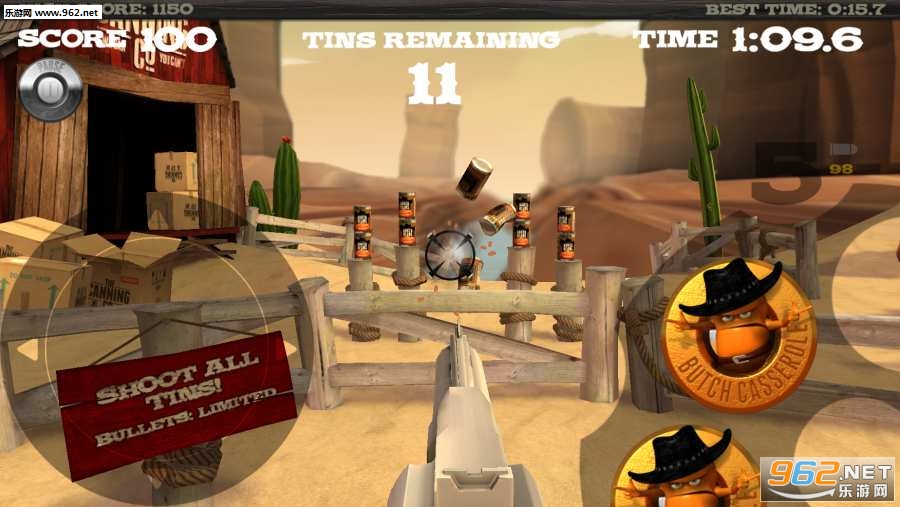 《击倒匪罐(Far Tin Bandits)》是一款西部风格的射击小游戏,我们的西部牛仔需要将所有的铁罐击中,击碎成功,而且还是我们所了解的左轮手枪,这是全球知名的,并且你还需要小心不能碰到油桶,你懂得限制条件还是需要的。