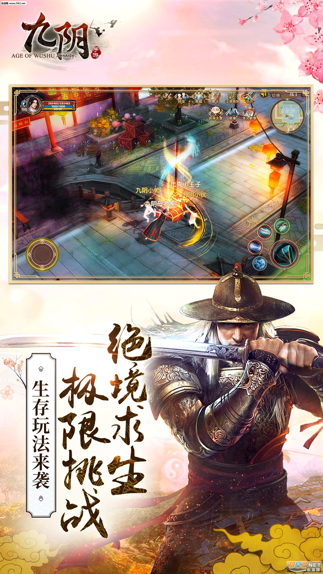 风靡全球超过9000万PC玩家,经典武侠网游巨作《九阴真经》正式移植手机,与玩家再续前缘!《九阴》手游版保留了原作世界观,在数十万字庞大的故事体系与天气系统打造的大明江山之下,玩家将透过精彩剧情动画的牵引,化身一代侠客顺势出招、斩除恶敌,获得身历其境的感动!百分之百完美移植虚、实、架招真武侠精髓,加上突破地图框架、全方位3D立体轻功飞移,次世代手游魅力被发挥得淋漓尽致。夺书、比武、刺探、团练…等各种经典九阴玩法一一重现,真正无懈可击的掌上江湖世界,就在《九阴》手游。