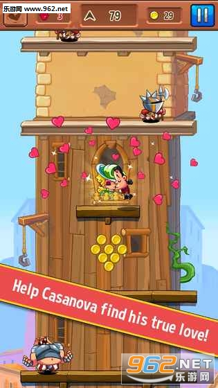 《多情骑士Casanova Knight手游》是有些类似于长发公主中的桥段,王子为了心爱的人需要爬上高楼,但是这里不再是一帆风顺,而是每一层楼都设置的陷阱,难关,你需要打败那个拦路的人才可以最终获得胜利,赢的爱人。