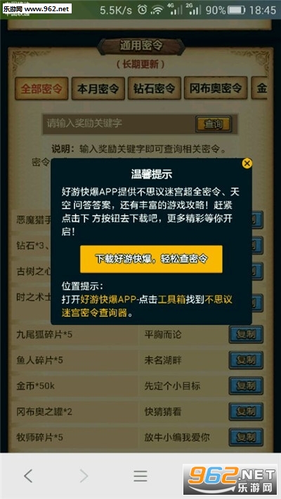 2、能根据你的需要一键查询钻石密令、冈布奥密令、金币密令;