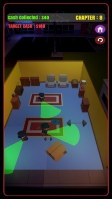 幸运大盗是一款好玩的角色扮演手游,游戏整体对决还是很不错的,很多贵重物品来这里需要你来窃取,避免被保安发现,游戏中关卡设计还是很严谨的,利用保安的监控死角灵活走位,玩家特别要小心不要被发现,趣味的冒险玩法等着你来感受,有兴趣的玩家快来试试吧!