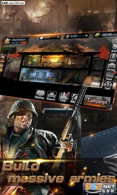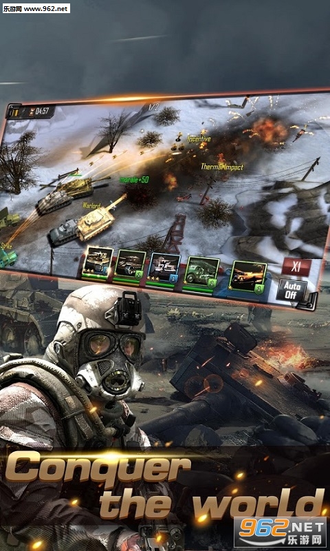 招募各种士兵和车辆,以形成自己的军队。完成任务来赚取经验和排名你的力量,统筹和团结与朋友来增加你的力量,完成每天的目标和任务,在大战场征服其他的帝国:全面冲突!