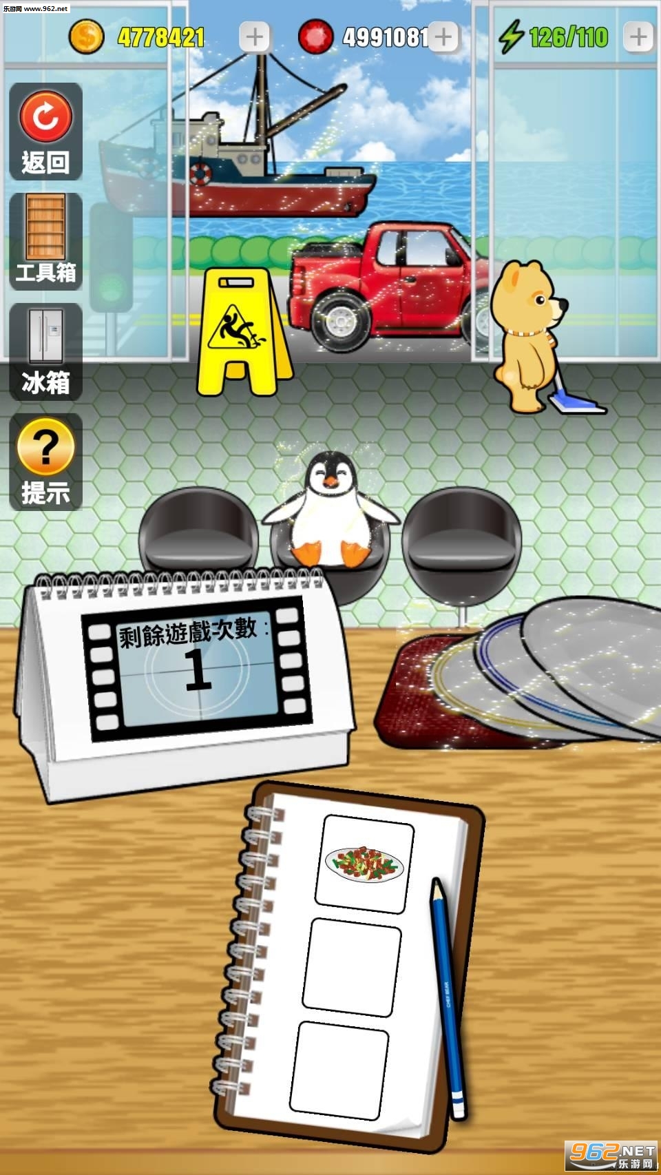 一款以美食烹饪为主题的模拟休闲类手游,游戏中玩家需要和我们可爱的熊厨师在全国各地进行美食历险,这个过程中玩家一定要权利配合熊大厨哦,不然你们两个都会不好的哦!