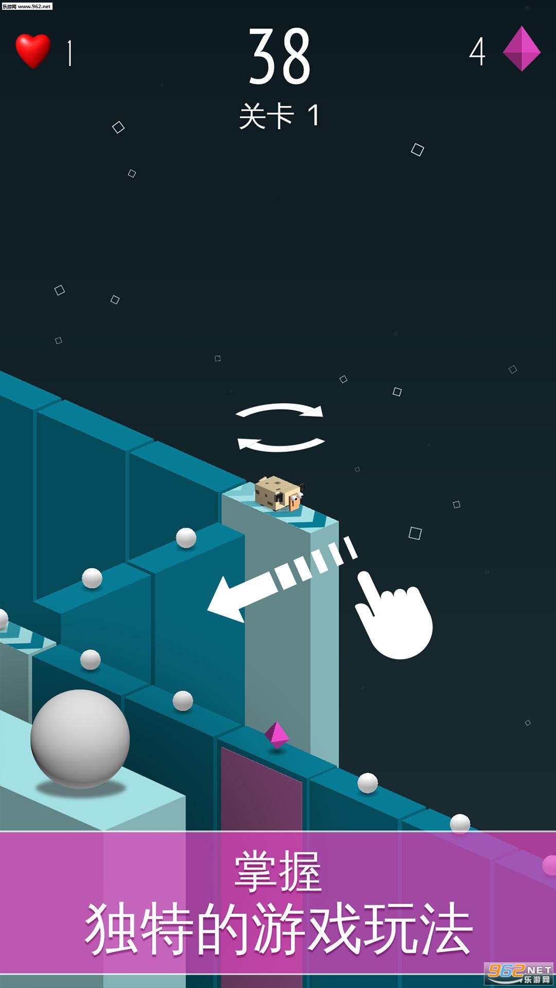 独特游戏性:你的角色会自动沿直线跑动,但你必须迅速反应,切换其路径,收集各关卡中的所有圆点。